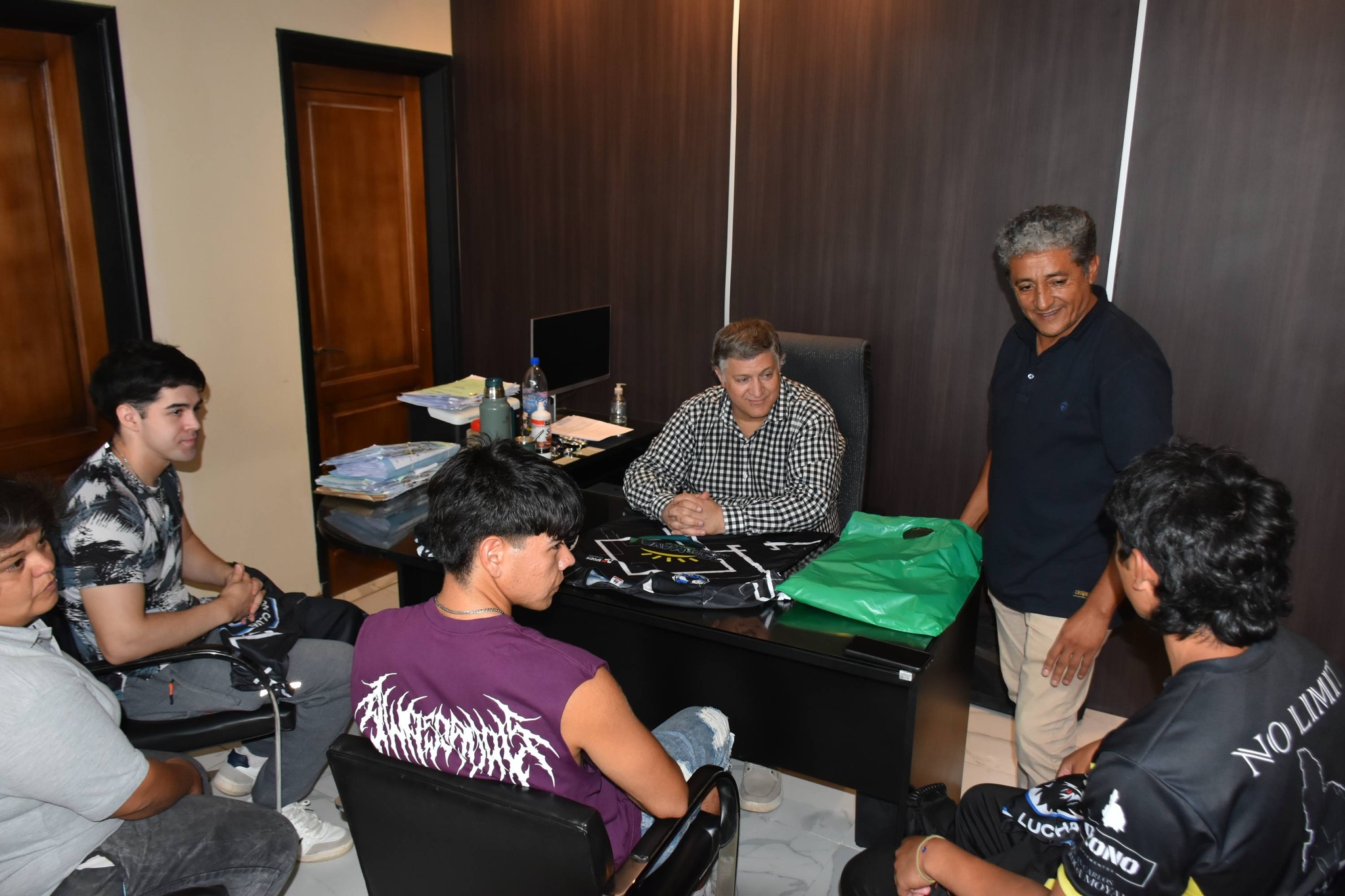 Estos jóvenes realizan Lucha de brazos y recibieron de manos del intendente camisetas y un subsidio por parte del municipio para continuar fortaleciendo su participación deportiva.